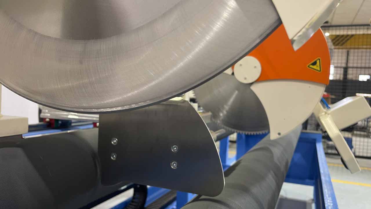 La máquina está pensada para empresas con espacio limitado, pero con la necesidad de procesar materiales blandos como textiles y nonwoven (Cuchilla biselada) y materiales duros como papel y plásticos (Cuchilla dentada).
