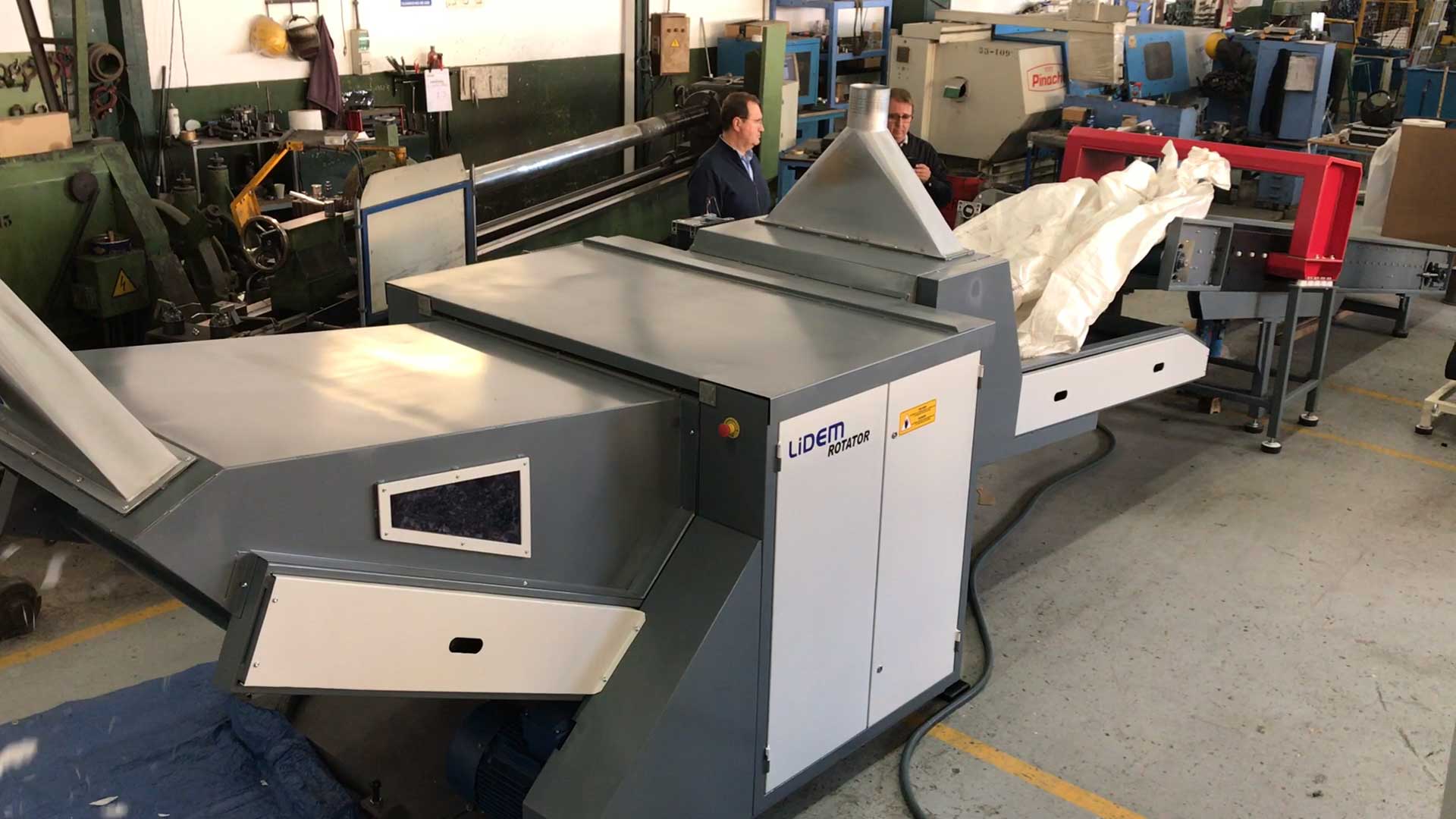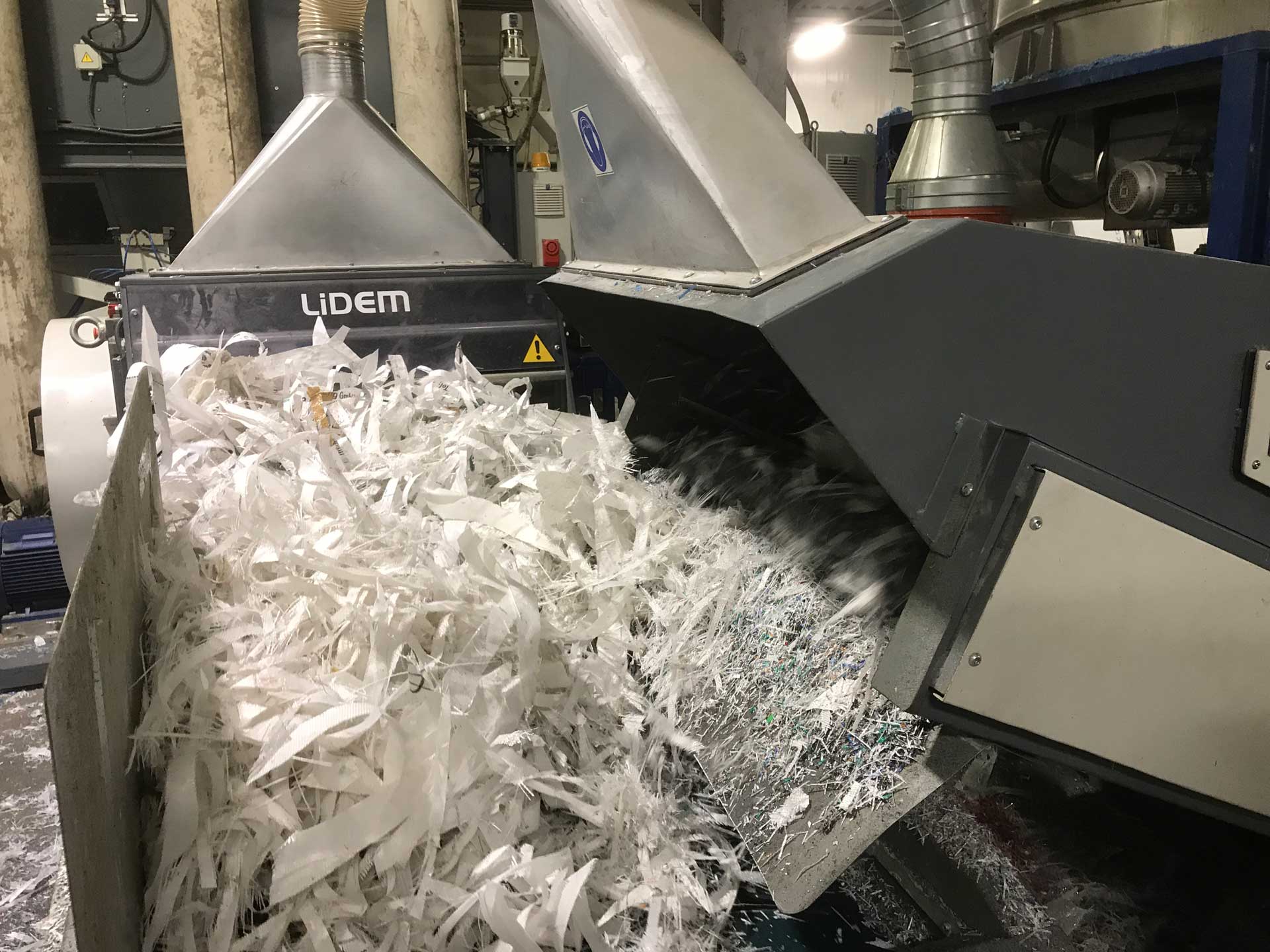 Cortadora / trituradora con ancho de trabajo útil de 870 milímetros y longitud de corte variable.
