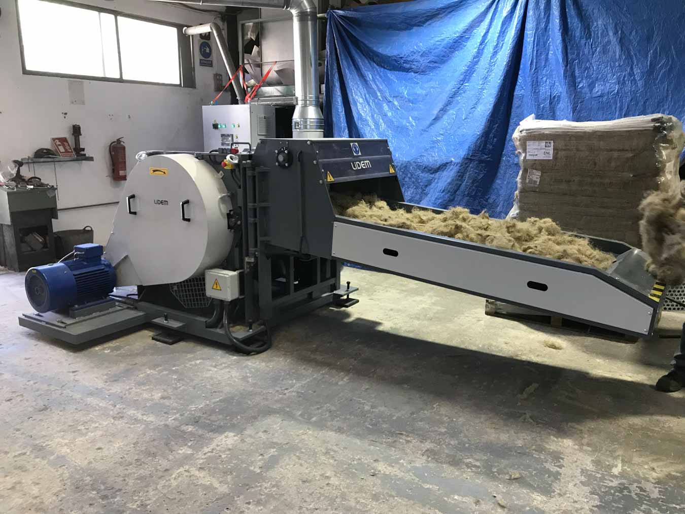 Cortadora trituradora para el corte y reciclaje de fibras naturales como algodón, yute, lino, cáñamo, esparto, sisal, fibra de coco, ramio, bambu, abacá, lana.