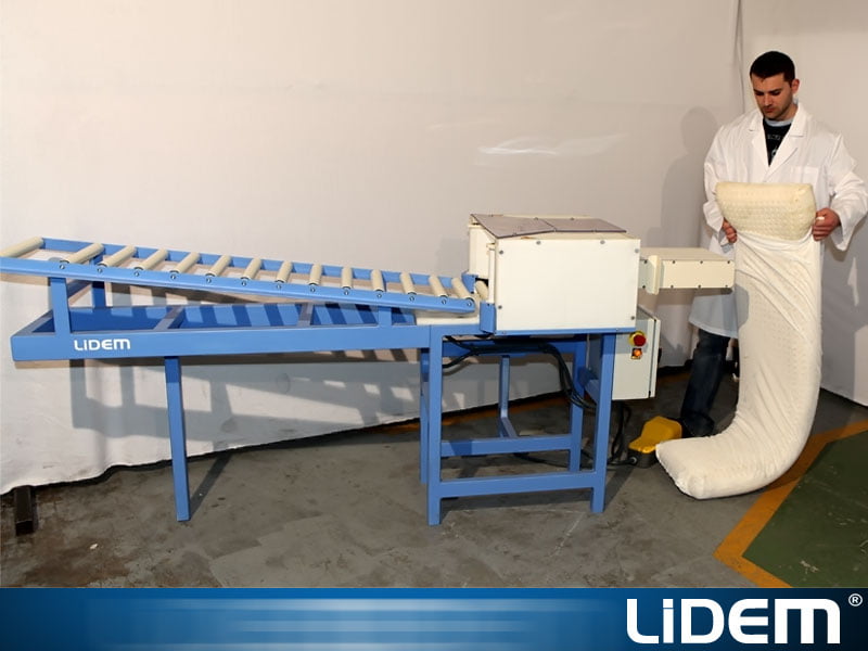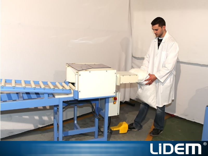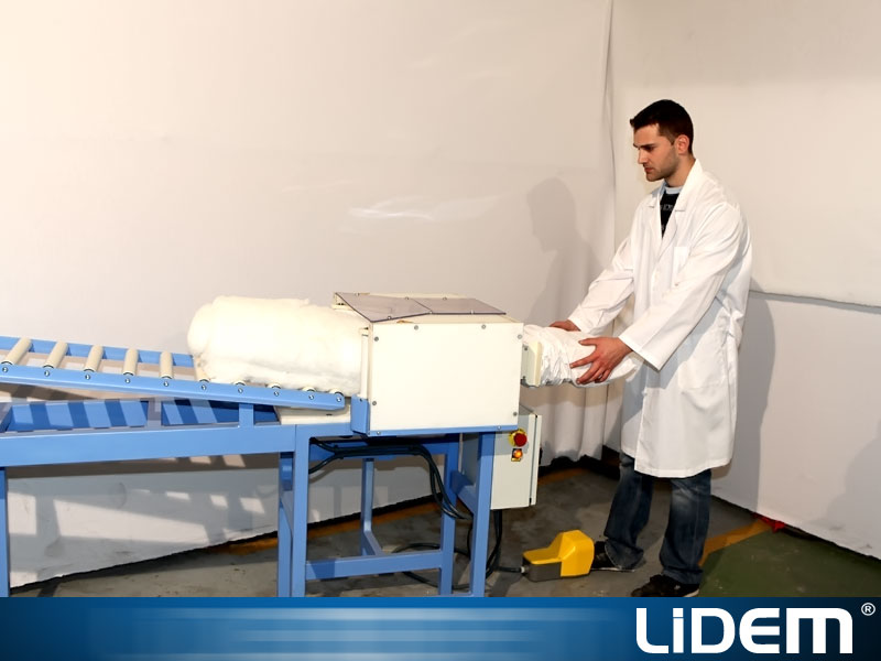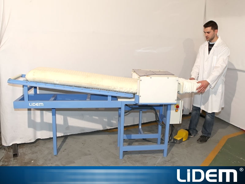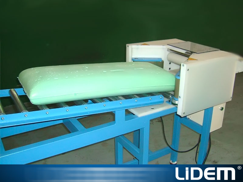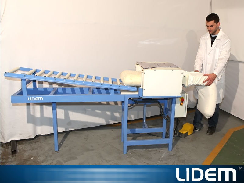 Máquina especialmente diseñada para realizar la tarea de la introducción de almohadas y cojines en fundas de manera automática. Apta para el trabajo con látex, viscoelástica, guata, fibra, esponja, etc.
