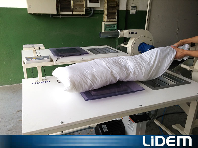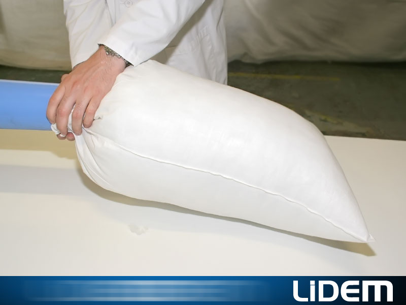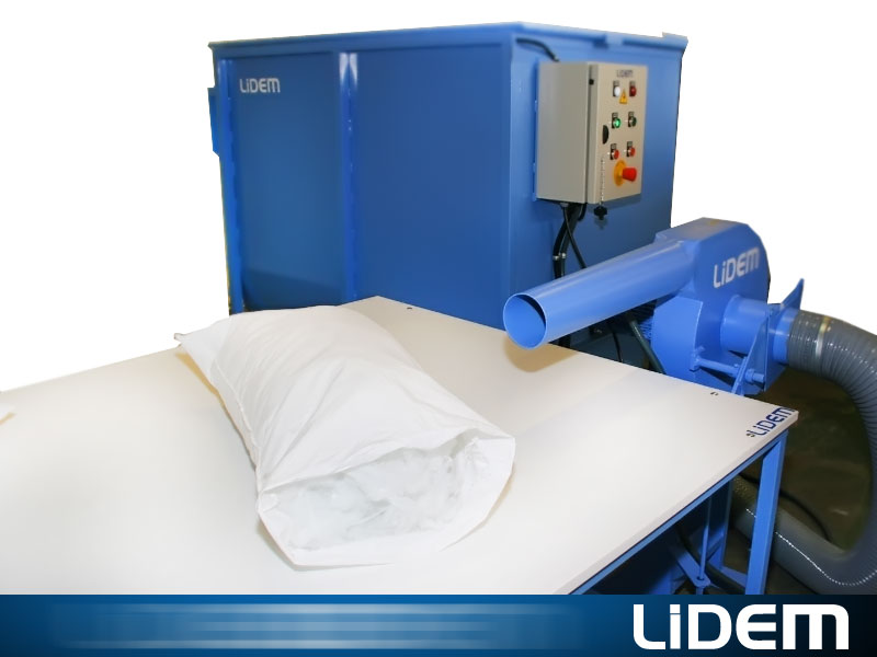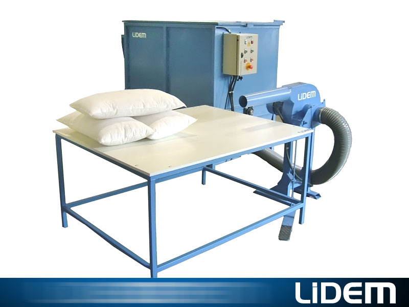 Máquina especialmente diseñada para el relleno de almohadas, cojines, peluches… con fibra abierta (poliéster, fibra hueca siliconada…) o con material triturado (látex, gomaespuma, viscoelástica, acolchado…)