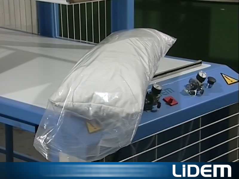 Máquina especialmente diseñada para reducir los costes de transporte mediante el prensado y envasado al vacío de almohadas, cojines, edredones, nórdicos, comforters, mantas, colchas, toallas.