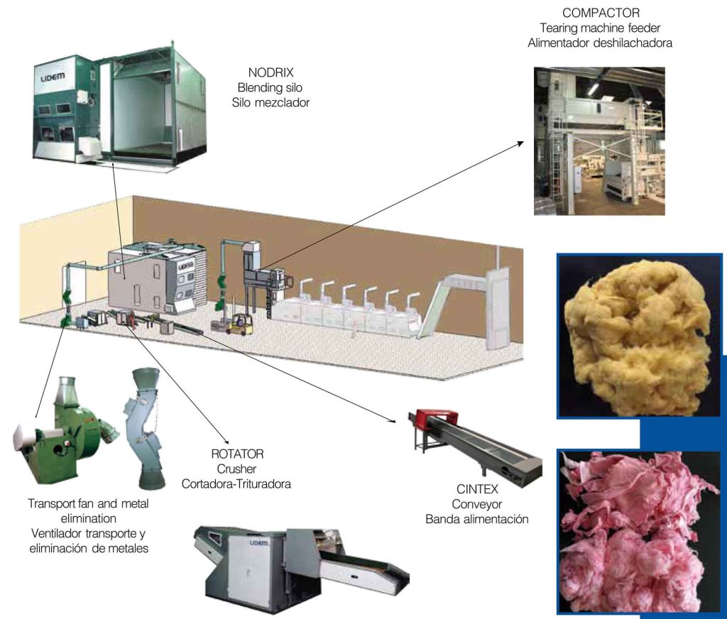 Líneas de preparación para el reciclaje de varias capacidades destinadas al reciclaje de tejidos sintéticos (nylon, poliéster, acrílico),
