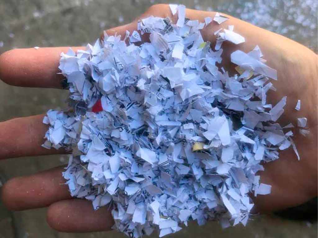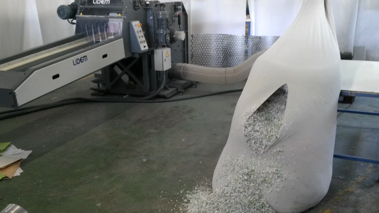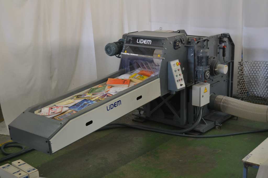 Molino triturador de alto rendimiento para triturar, cortar, desgarrar, destrozar, romper todo tipo de papeles, libros, guías y listines telefónicas así como documentos oficiales.. El material obtenido es reutilizado como elemento de aislamiento, combustión, o reciclado y reutilizado de nuevo como papel.