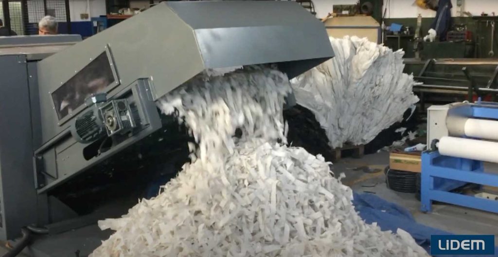 Line of shredding and cutting for felt, textiles, nonwovens, TST, TNT and fabrics