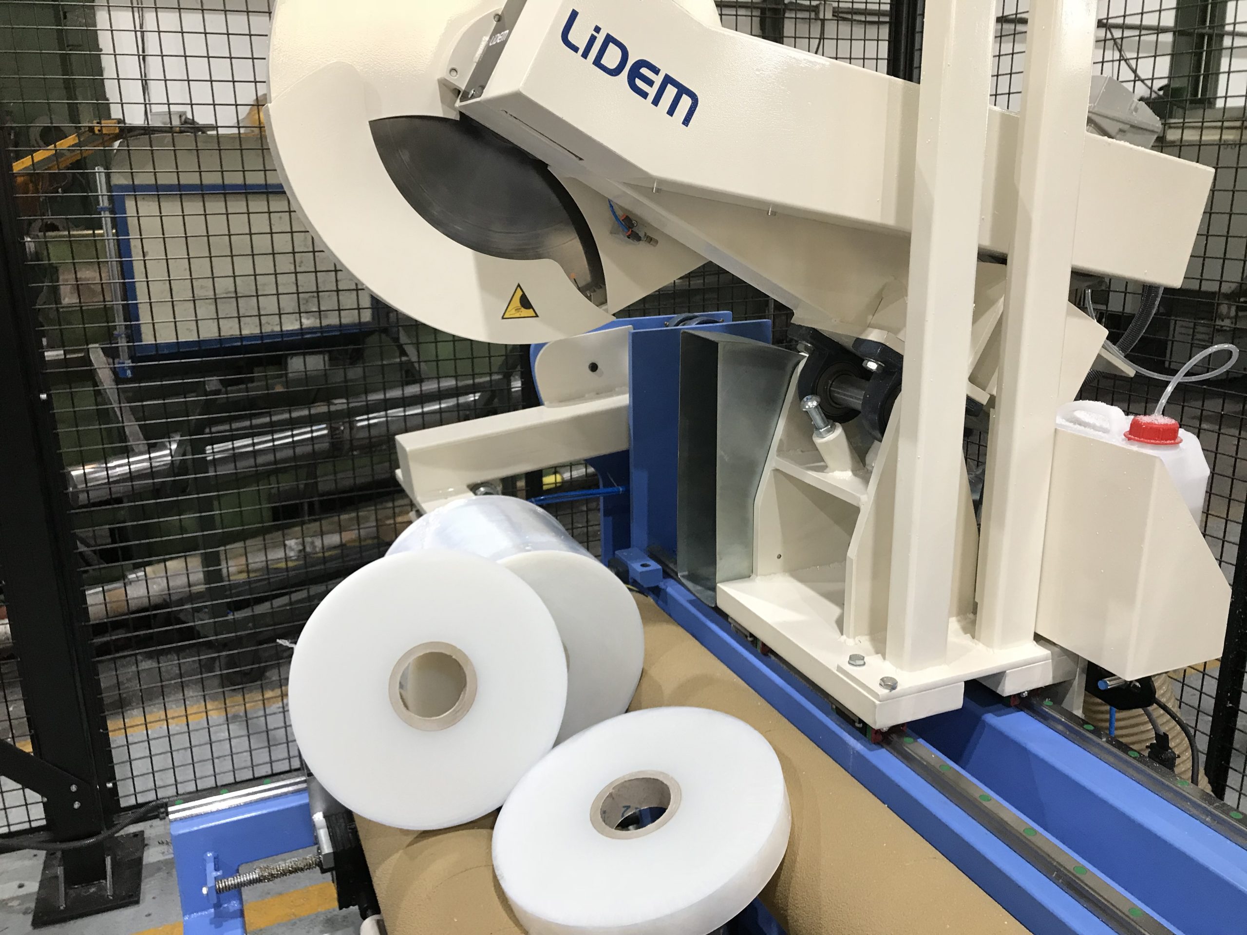 An automatic roll-cutting machine is used in blocks and strips. With working widths up to 6,000mm and roll capacity up to Ø1000mm. With motorised sharpener and blade lubrication.